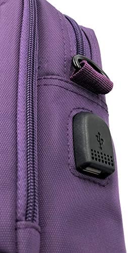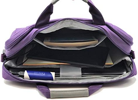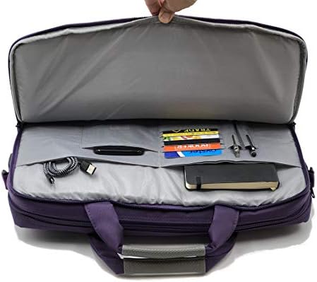 Ultimate Protection and safety for your laptop. A padded laptop compartment with soft foam and velcro strap provides extra protection that effectively absorbs accidental bumps, reduces damages caused by impacts, and protects your computer from scratches. Designed for Convenience this laptop bag features comfortable handles and a removable, adjustable anti-slip shoulder strap with soft PU leather pad. Dual zips enable easy and quick access to your laptop or accessories. The design of the compartments and pockets is suitable for different items, such as, books, tablets, carrying more than one laptop device, paperwork, files and much more. The back pocket is specially designed so that it can be converted to firmly be fixed to a suitcase, luggage or trolley. The front Compartment has a big zipped pocket with extra storage and separate compartments for pens, phone, cards, wallets etc. This bag is designed busy people on the go and with this in mind it has a handy usb charging cable built in to the bag so you can charge your phone, tablet or device whilst on the move. Simply connect your portable charger to the cable inside the bag and connect your charging cable to the port on the side of the bag to your device. ( portable charger and charging cable not provided) Dual sturdy soft PU handles and a removable adjustable shoulder strap with soft PU leather pad and metal hoops and loops. Available in 4 colours: Black, Tan Grey, Purple and Red Size: External – 45CM x 33CM x 9CM Internal main center compartment – 44cm x 32cm Internal main compartment with padded partition and strap – 42cm x 32cm Weight: 900g Fits most 17-17.3 inch Laptop/Notebooks. (Refers to screen size) Please check your measurements before ordering because the bezel size is different on all laptops/notebooks.
