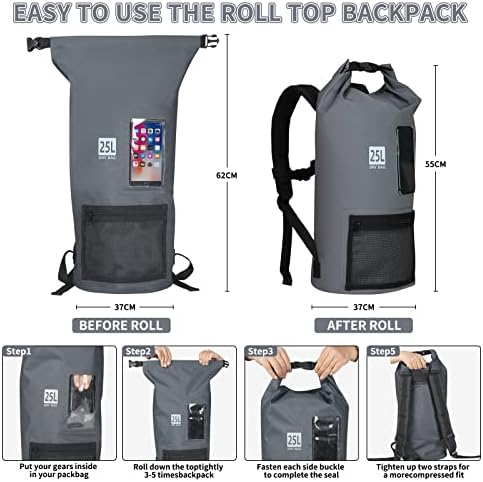 It’s also nice for a dry bag to be designed with a extra front mesh pockets and a clear phone pouch,so you can store necessities or personal belongings in a hand reach and have a quick access to them.