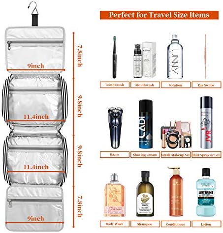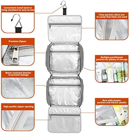he toiletry bag includes reliable double zippers,stronger and smoother.It ensure you can easy to open and secure close,never be stuck.