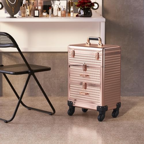 【Multipurpose】Overall Size: 32 x 23 x 56 cm. Ideal for beauticians, hairdressers, makeup artists to travel, work, makeup, and hairdressing. This makeup case trolley is also the best gift choice for Birthday, Mother’s Day, Valentine’s Day, Christmas and Thanksgiving.