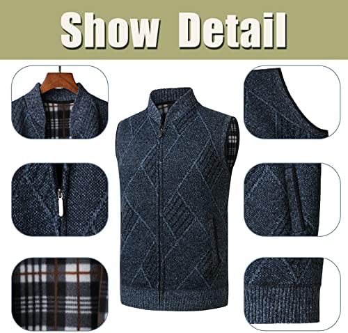 Mens Winter Sweater Vest Top Zip Up Knitted Knitwear Bonded Fur Line Sleeveless Gilet Warm Vest Coat