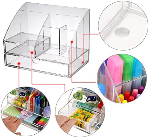 Clear DesigMulti-Compartment — 7 divided compartments, include 5 compartments and 2 sliding drawers, to organize your pen/pencils, remote control, mobile phone, business cards, USB cables and many other small items. Enough and clear separate compartments help you organize your pensonal items in order, which can keep the desktop away from cluttern