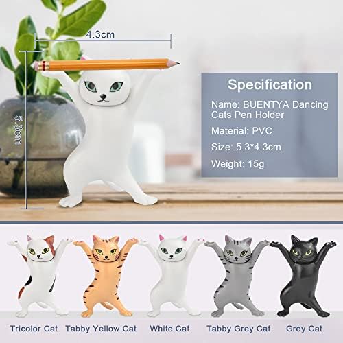 Material PVC Color white, black, gray, yellow, multicolored spots Size 5.3 * 4.3cm Package Includes 5 * Dancing Cats Pen Holder