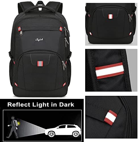DIMENSION & DURABLE MATERIAL – Size of extra large college backpack: 12.6 *7.8*19.6(inches), Capacity:45L,separate padded laptop compartment fits most 13, 14, 15, 15.6, 16, 17, and up to 17.3 inch laptop/Ipad/Computer.The business computer backpack made from high quality polyester fabric shockproof with high density nylon lining for better TEAR & WATER RESISTANT and heavy duty backpack.Cafele provide 30-Day Money Back Guarantee worry-free 12-month warranty and friendly 24 hours customer service.