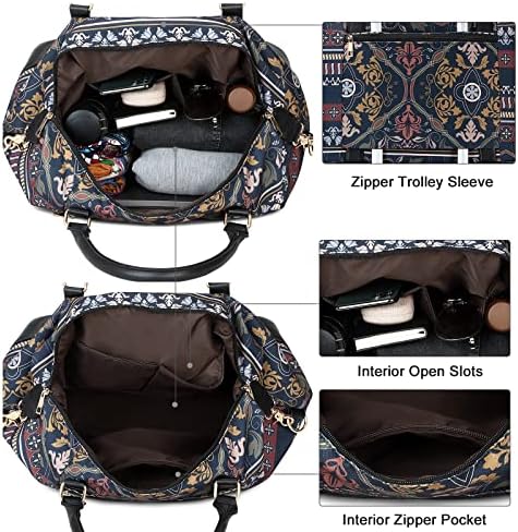The small weekend travel bag also comes with an adjustable PU Leather shoulder strap. Back side with a trolley sleeve allows to keep the tote attached to your roller bag or trolley luggage.