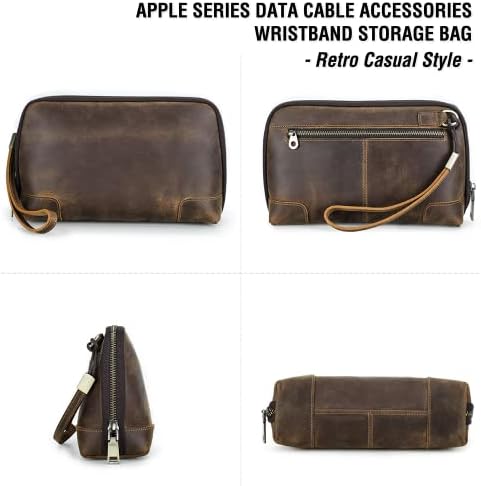 🔌【Vintage Design for Daily/Travel Organize】➯ Handmade products, the minimalist vintage design brings comfortable experience in using. The feel of Top Grain Leather is very pleasant in hand! With the size of 8.7″ x 5.5″ x 2.8″ slim made, easily accommodates phones, data cables, USB, chargers, headphones, power bank, banknotes and other accessories. Exterior pocket for easy access to cards and passport. Protectable without losing flexibility and portability!