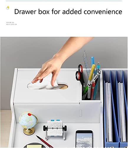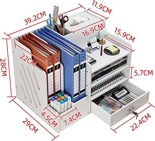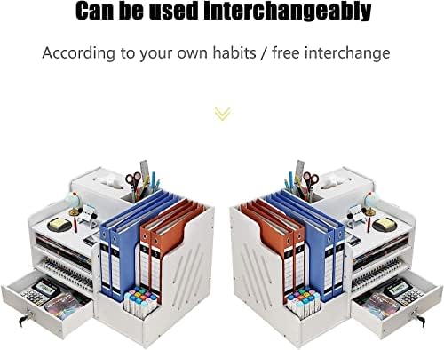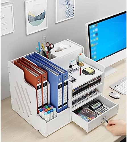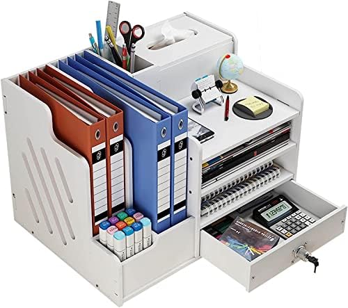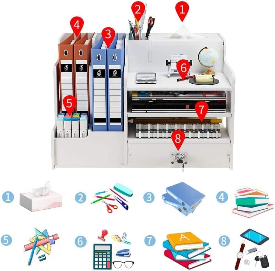 📁Included Components:This office organiser has 2 pen holders, 2 book shelves, 4 compartments and 1 tissue holder.They make up this fully functional desk organization. Easily organizes all your office supplies. And it comes with a drawer, and the drawer has a lock, you can put items in the drawer and lock it, effectively protecting your items and privacy.