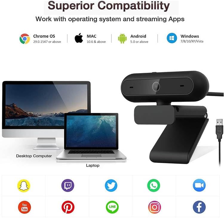 ✅Compatible Plug & Play: Simply plug the webcam into your device and you’re set to go, no drivers needed. Works with Windows, Mac OS, Chrome OS, Android. Perfect for your favourite applications like teams when in a meeting or streaming your best gaming clips online.