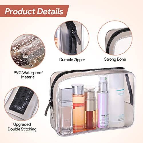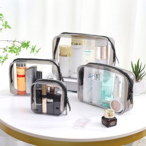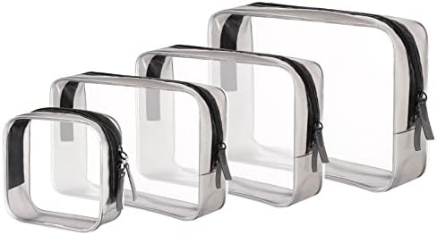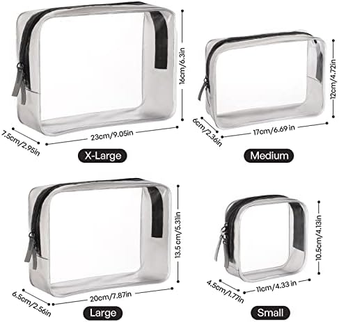✈[Correct Size for Flights]: Clear toiletry bags including 1pcs extra large clear PVC zip lock bag, 1pc large zipper bag, 1pcs TSA security approved clear makeup bag and 1pcs small makeup pouch. TSA approved transparent PVC toiletry bag measures 17cmx12cm/ 6.7×4.72in which is strictly follow 3-1-1 regulations within the quart size to make sure you can pass through airport quickly and easily.