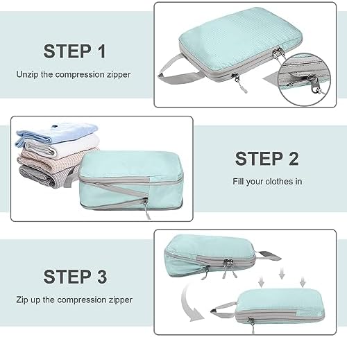 CONVENIENCE YOUR LIFE: Four different sized compression packing cubes ensure that your belongings have their own place, so you can say goodbye to cluttered suitcases and be able to find what you’re looking for with ease. Perfect for clothes, shoes, electronics, toiletries and more!