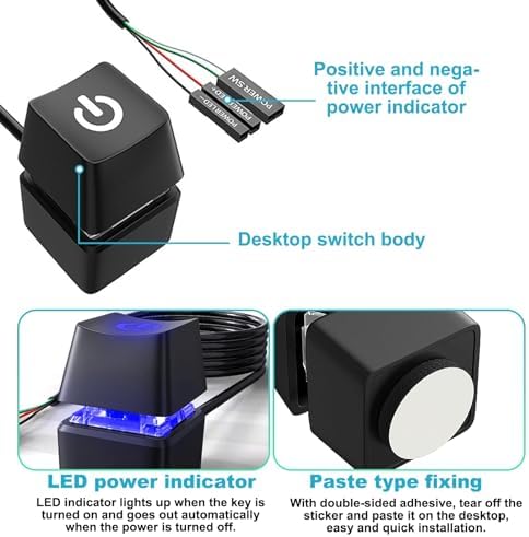 【Mechanical Key Design with LED Indicator】Experience the satisfying click of a mechanical key each time you power on or off your PC. Our PC external power button switch not only provides functional utility but also adds an aesthetic touch with its blue LED indicator, offering visual feedback and a modern look to your desktop setup. This design is especially appealing to enthusiasts looking for both performance and style in their computer accessories.