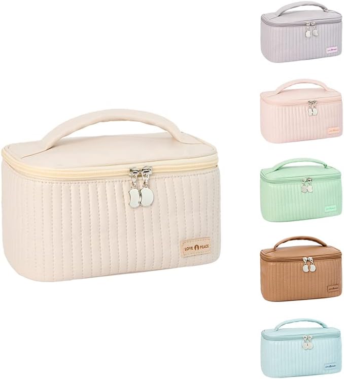 【Easy to Use】: Our cosmetic bags has a large opening design, which is convenient for you to take and see the contents at a glance. The zipper of the travel makeup bag is easy to open and close, durable and smooth without jamming, and the appearance is smooth so that it will not hurt your hands.