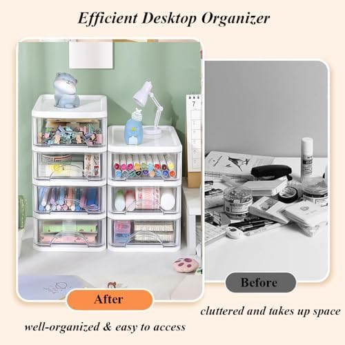 【Keep Neat and Tidy】– This desktop storage box with drawers provides enough space to store miscellaneous items scattered on the desktop, making the desktop neat and clean and well organized without having extra space.
