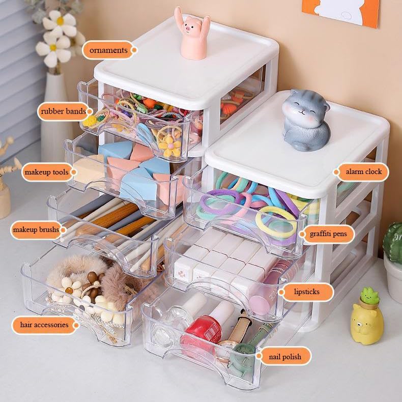 Desktop Drawer Organizer, Transparent Plastic Drawer Storage Cabinet, Waterproof Storage Case Multi-layer Storage Box for Home Office School