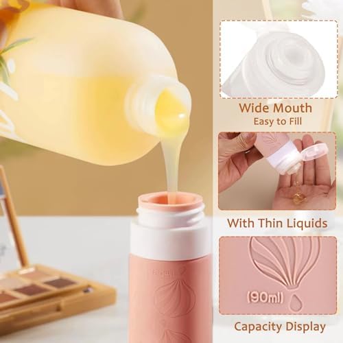 【Practical Design】The silicone travel bottles are suitable for shampoo, conditioner, body wash, lotion, and other toiletries, which are the best containers for carrying these personal items when traveling. These travel size bottles are made of soft and squeezable body with wide mouth for easy refill and cleaning.