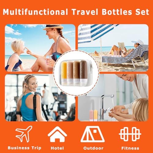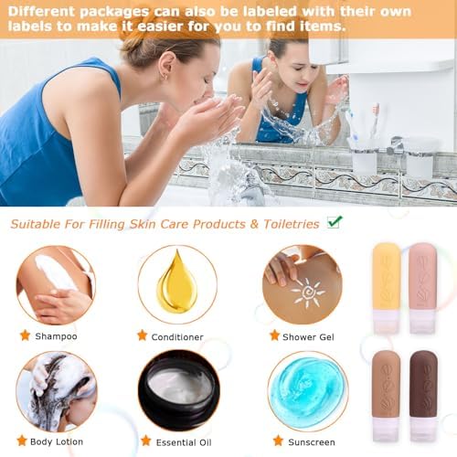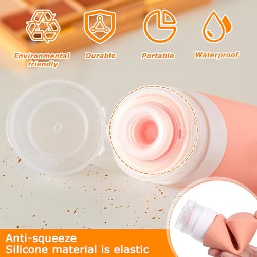 The travel kit travel toiletries are designed leakproof, so no liquids will be leaked in the suitcase during your travel, the flexible silicone brings convenience, you will get no waste when squeeze it.