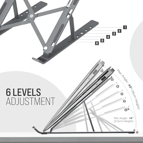 🎒 [ FOLDABLE & PORTABLE LAPTOP STAND ] : The DYAZO Laptop Stand is lightweight and durable, made of 100% aluminium alloy material. It has a thin and hard frame that can be easily folded and stored in your bag. It also has a stable double M structure that makes opening and folding of the gaming laptop stand very easy and convenient laptop holder.