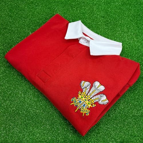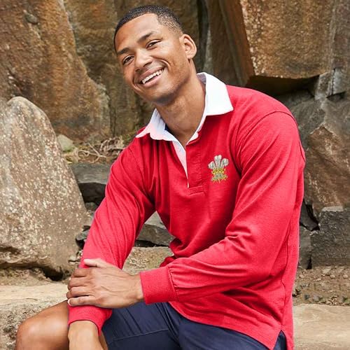 Mens Wales classic rugby shirt with its traditional collar and sturdy cotton construction, it not only offers a sporty look but also ensures comfort and durability, This Embroidered Prince Of Wales Badge Rugby Shirt is a gift idea for Him
