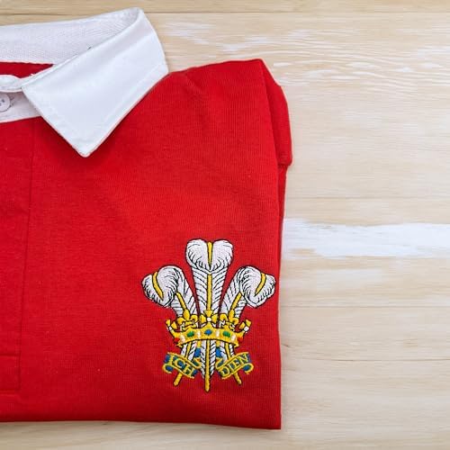 Show your support for rugby nations in style with this embroidered rugby shirt featuring the Prince Of Wales feathers emblem