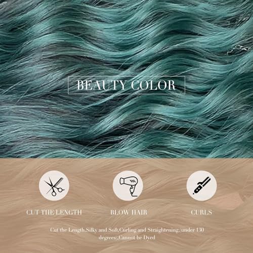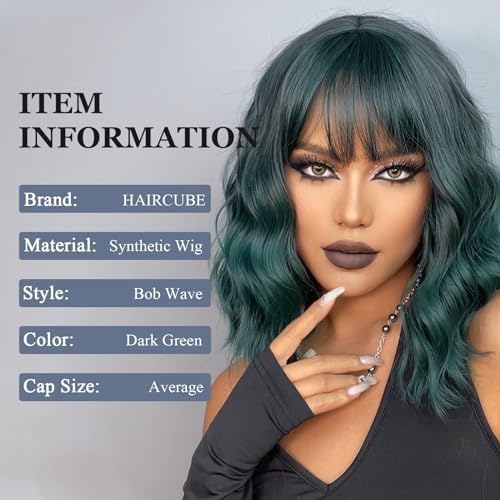 Emmor Short Curly Wigs With Fringe, Wavy Bob Wigs For Women Heat Resistant Synthetic Wigs Shoulder Length Wigs Natural Looking(Dark Green)