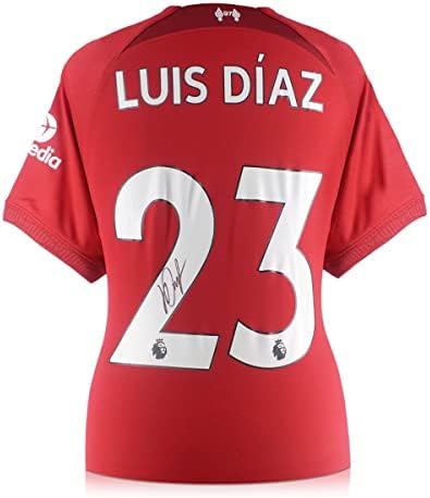 This 2022-23 Liverpool shirt was personally signed by Luis Diaz on October 2, 2022 in Liverpool. Since joining Liverpool in January 2022, Diaz has won the League Cup and produced a Player Of The Match performance in Liverpool’s 2022 FA Cup final victory over Chelsea.