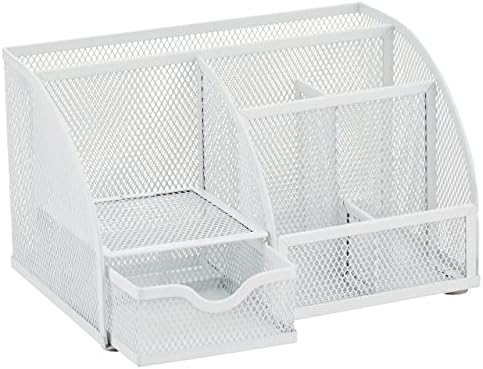Mesh metal desk organiser with seven compartments, including one pull out drawer;Made of quality mesh metal – durable, compact and smart-looking;Dimensions: 22 cm (L) x 14.2 cm (W) x 12.5 cm (H).