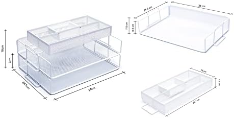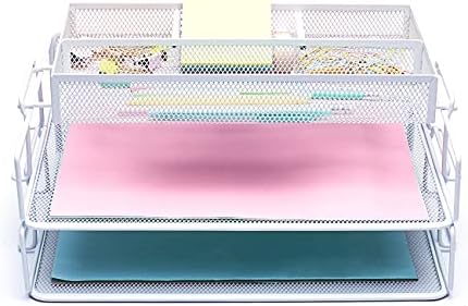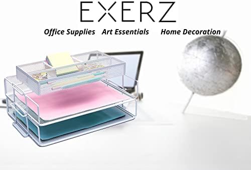 Exerz Mesh metal desk organisers, 2 layers of tray which are large enough to hold A4 papers. Perfect for add one on top of another, stack them and layer them up to save desktop spaces, and puts files into orders.With a unique memo holder on top, which is divided into small parts can hold memos, sticky notes, rubbers, pins, and other stationary items.