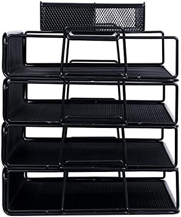 Exerz Mesh metal desk organisers, 4-Tier Stackable Desk Paper Organizer Letter Tray with Desk Accessories Organizer Sorter 4 Compartment.