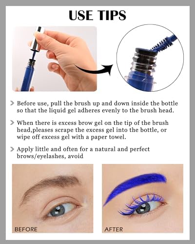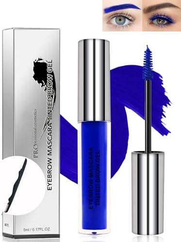 Tinted Brow Mascara Gel, 1Pcs Long-lasting Waterproof Smudge-proof Blue/Purple/Red/White/ Eyebrow Glue Colored Liquid Mascara, Semi-Permanent Tinted Brow Filler, Length Curly Mascara for Cosplay, Stage Show, Party etc. Halloween Eye Makeup Gift for Women Girl