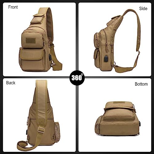 FANDARE Tactical Sling Bag Military Chest Bag Shoulder Backpack Crossbody Bags with USB Charging Port Tactical Small Rucksack for Men Women Hiking