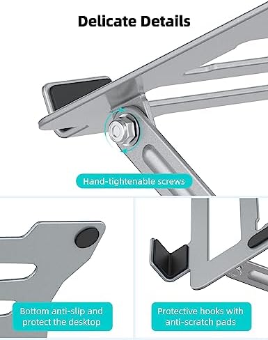 【Adjustable Height】Laptop stand for desk can raise your laptop up to 6inches. Included with an Allen Key, you can set your laptop at various heights and set the keyboard at a suitable angle which will be extremely convenient if you use your laptop in a variety of locations.