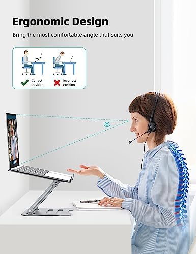 【Ergonomic Posture】With its adjustable feature, this laptop desk stand will improve your posture while working. Set according to your needs, an ergonomic laptop stand will raise your screen to eye level, preventing strain on your neck and back caused by a forced downward posture, furthermore you won’t need to stretch your arms in awkward ways to type.