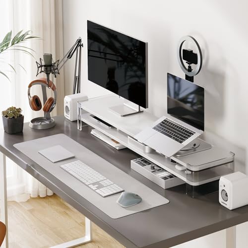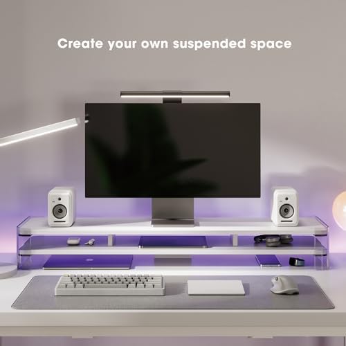 【Stylish Acrylic-Leg Design】Solid acrylic footing providing strong support, max holding capacity 45kg. It is also very suitable for use with light strips, making your home office or gaming space more warm and atmospheric.