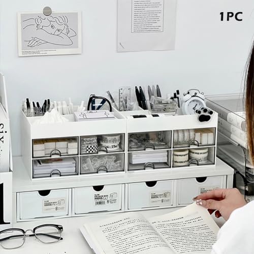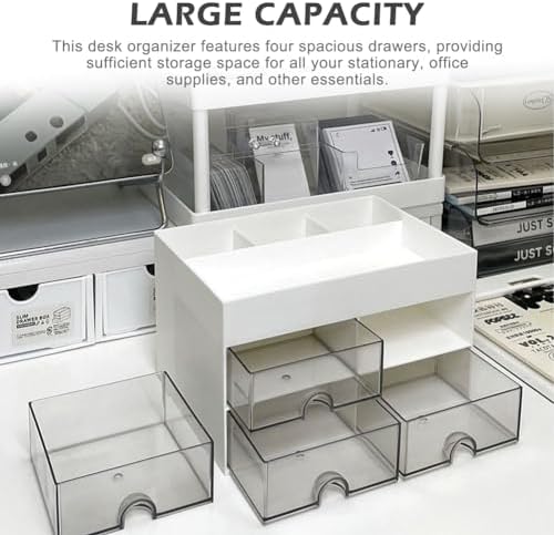 【LARGE CAPACITY】This desk organizer features four spacious drawers, providing sufficient storage space for all your stationary, office supplies, and other essentials. Keep your desk clutter-free and organized with ease.