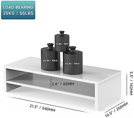 The 2-layer design increases storage space and raises the monitor by 14cm.