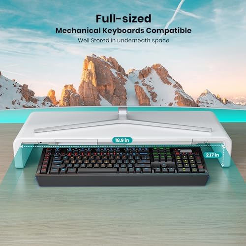✅【Functional Monitor Stand】: Raise your monitor at a comfortable eye level to effectively prevent the back, neck, and shoulder pain when working in front of a computer for hours. And there is space under the stand that can be used to store books or the external keyboard and mouse to save valuable space on your workstation.