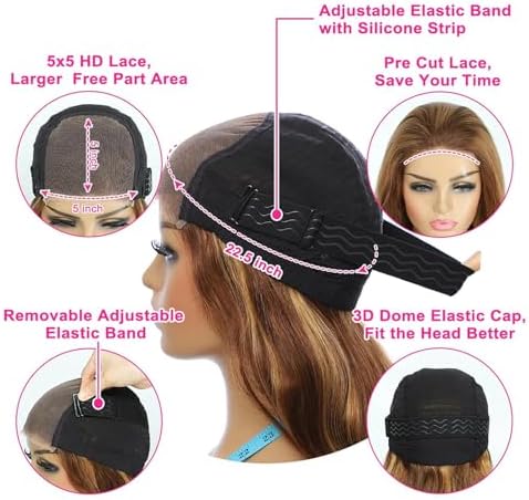 HIGHLIGHT WIG: Human hair lace front wigs are Medium Size Flexible Cap with A Remoable Elastic Band,Featuring the Super Soft and Skin-friendly Material,No Clips or Combs Inside Makes the Wig Comfortable Wearing,In the Meantime Ultra Stretch Fit Most People