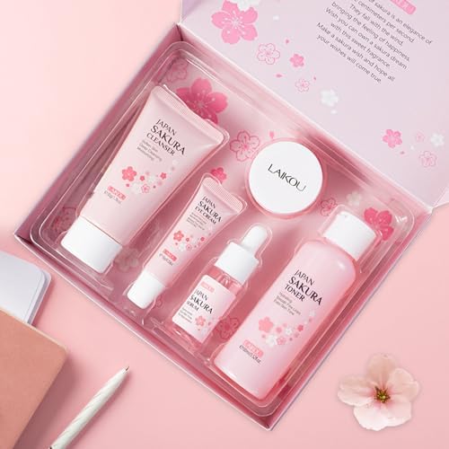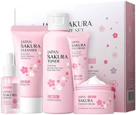 Pamper your skin with the Anti-Aging Sakura Skin Care Gift Set. Inspired by the beauty and freshness of sakura blossoms, this 5-piece skincare set uses the natural essence of sakura, known for its skin-rejuvenating properties. Our set aims to balance your skin, shrink your pores. This comprehensive routine is your key to healthier-looking, youthful skin.