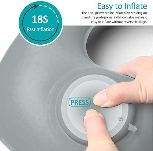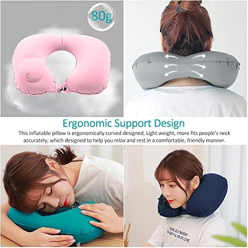 šćErgonomic Support Designć This inflatable travel pillow is ergonomically curved designed, more fits people’s neck accurately, which designed to help you relax and rest in a comfortable, friendly manner. Adjustable inflation level and softness, this travel neck pillow is suitable for any size of head, just adjust the size to your favorite inflation level and hardness, ergonomic design and contour It can support your head and neck. Make sure you feel comfortable during the journey.