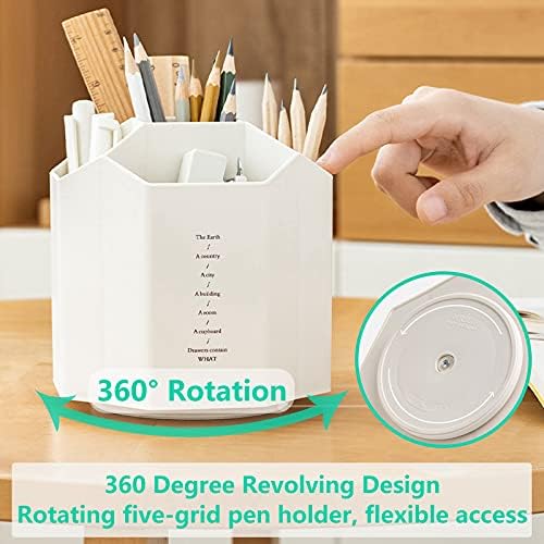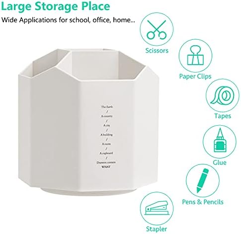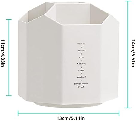 Multifunctional Desktop Storage Box: This rotating pen brush holder is very suitable for storing pencils, cosmetics, bathroom supplies, toiletries, and even kitchen utensils; it can store office appliances, such as brushes, correction tapes, scissors, TV remote controls, etc, to the greatest extent Save space on the desk and keep it tidy