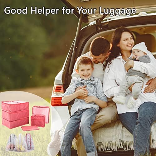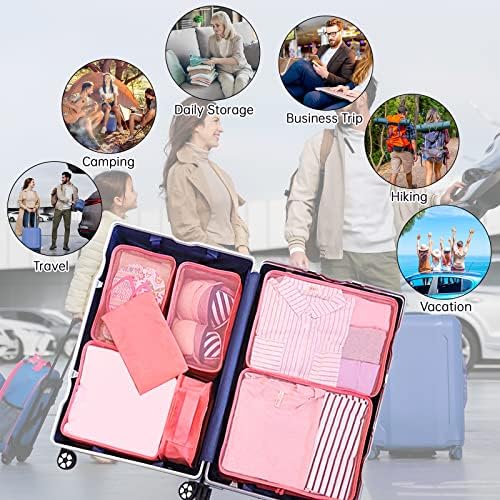 10 Pcs Travel Organiser: You will get ten pieces travel bags at a time, including 6 packing cubes for travel, 1 travel makeup bag and 3 drawstring bags. Large capacity space can simplify your travel life and meet all your different travel needs. Help you sort your luggage and clothes, so that you can keep a happy mood during trip.