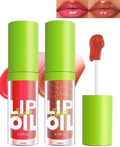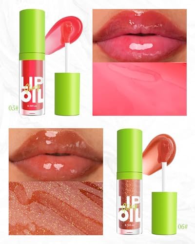 Hydrating Lip Glow Oil Set, 4Pcs Tinted Plumping Lip Oil Gloss Pack, Ultra-Hydrating & Nourishing Lip Care Lip Tint, Smooth Glossy Finish Clear Tint Shiny and Vegan Lip Oil, Moisturizing Non-Sticky Formula