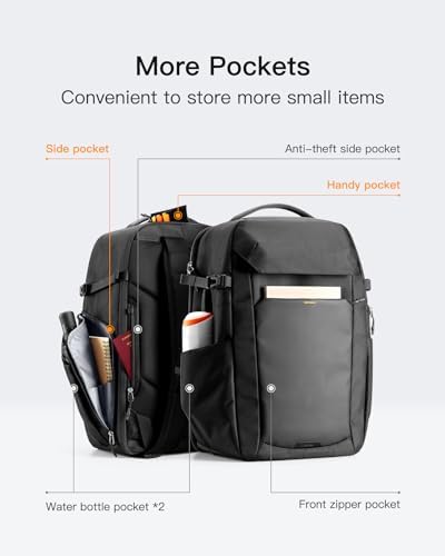 Organized Storage: The dimensions are 52 * 33 * 22 cm, meeting the requirements of most airlines. The laptop backpack has 2 hidden zipper pockets under the handles and on the back left side for easy and secure access to essential documents, 2 expandable water bottle pockets, and 2 zipper pockets storing items like charging cables for quick access during travel. Note: Please confirm size requirements with the airline before traveling.