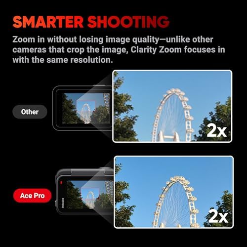 Easy Shooting and Sharing: Effortlessly mount Ace Pro and seamlessly switch between accessories with the magnetic mounting system. Ace Pro also supports easy-to-use features such as Pause Recording, Gesture Control, Clarity Zoom and more. The built-in AI automatically generates highlights for you, pushing a ready-to-share video to you via the Insta360 app.