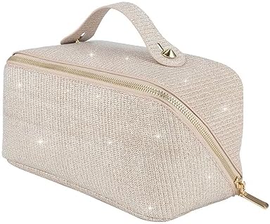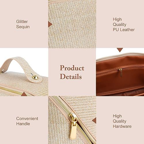 Large Capacity Glitter Sequin Cosmetic Bag Travel Makeup Bag Sparkly and Shiny Portable Toiletry Bag with Handle for Women