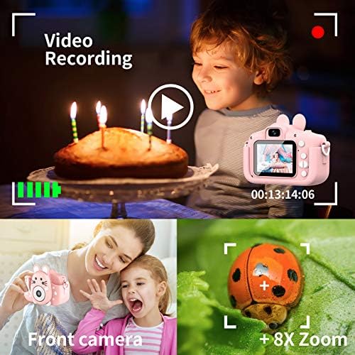 đź“· 『MULTI-FUNCTION & PUZZLE GAMES』- Come with 32GB card to store thousands of photos! Supports Photographing, video recorder, 8x digital zoom, self-timer and time-lapse shooting, dual camera switching, multiple color filters, a variety of cute and fun photo frames, 3 puzzle games that good for children’s intellectual development.