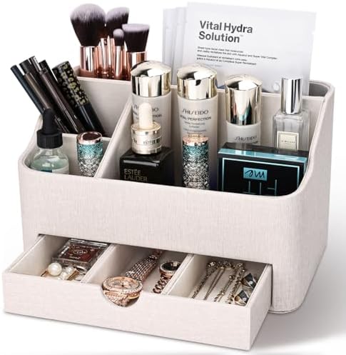 ▶CONVENIENT DESK DRAWER ORGANIZER: Divided into 5 compartments and one small drawer, which have enough storage to allow for office supplies organization. Large capacity, multifunction help you arrange the desk accessories and stationaries clean and tidy.The best and strongest storage option for you. DIMENSIONS: 10.2″L x 6.6″W x 5.9″H(26 x 17 x 15cm)