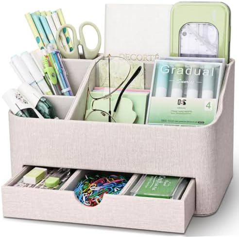 ▶PRACTICAL DESK TIDY: This Ideal desktop organiser is practical for organizing and categorizing small office supplies like pencils, markers, scissors, sticky notes, paper clips, cell phones, and cards or other small supplies., and more, enabling you to maximize your workspace and achieve a more tidy and orderly desk appearance.