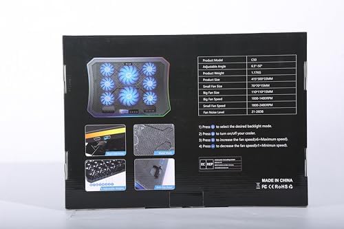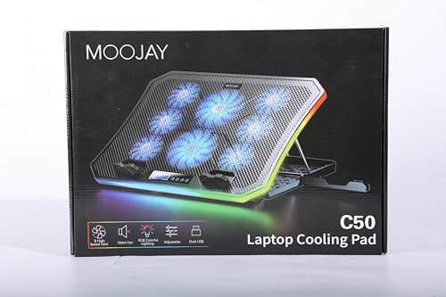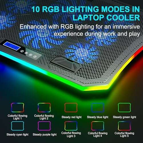 Craftsmanship Upgrade & 2 Years Warranty: The cooling base and shell, made of heat-resistant plastic, have a better texture and increased stability. The cooler for laptop is compatible with 11-17.3-inch laptops. It comes with 2 USB ports, without occupying laptop ports. Laptop fans equipped with a braided USB cable, it is not prone to loosening or detachment. Featuring an LCD display screen, it is simple and intuitive. You can easily control RGB lights, fan speed, and fan modes with the buttons.