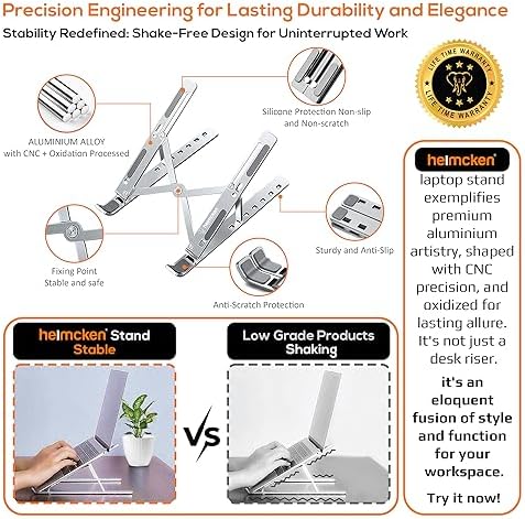 💻[MORE ANGLES- MORE COMFORTABLE] helmcken computer stand is easy to set up Laptop holder for desk, with SEVEN LEVELS for height adjustment laptop riser provides ergonomics to relax the spine.